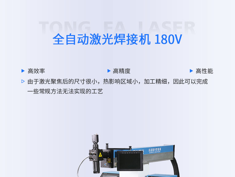 通發(fā)激光TFL-300V全自動激光焊接機,廣泛適用各種不銹鋼五金的激光焊接??蓪崿F(xiàn)大多數(shù)0.8mm以內(nèi)料厚五金產(chǎn)品的二維平面焊接。效率高,性能穩(wěn)定,性價比高。配置精密運動控制器和工作臺高速運動實現(xiàn)焊接。