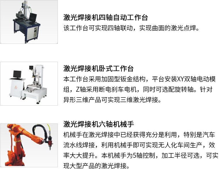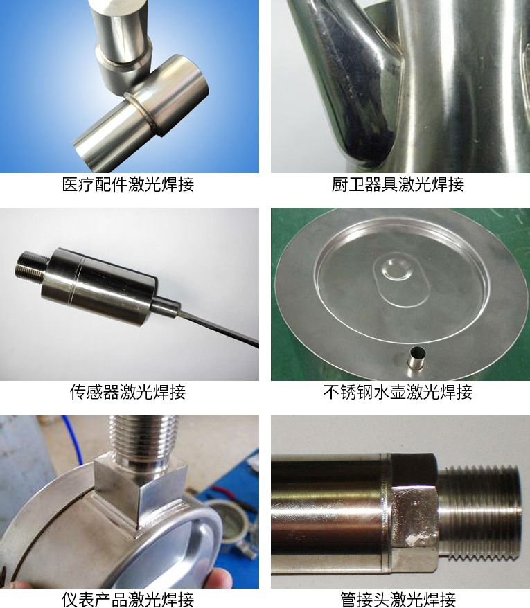 現(xiàn)廣泛應(yīng)用的領(lǐng)域有手機(jī)外殼、筆記本電腦外殼、五金構(gòu)件、廚具衛(wèi)浴、軍工制造、電池外殼、動力電池、儀器儀表、馬達(dá)、IT手機(jī)構(gòu)件、硅鋼片、汽車配件、激光熔覆、醫(yī)療器械等精密零件焊接。