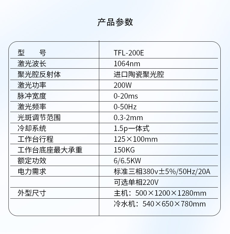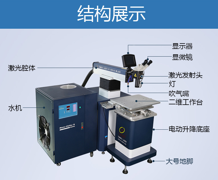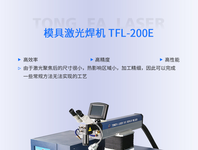 出口型模具激光焊機(jī)是通發(fā)激光公司專門為出口國外客戶使用而設(shè)計的系列機(jī)型TFL-200E,適用于各類精密注塑模具、壓鑄模具等模具激光修補(bǔ)焊接;同時也適合鑄件沙孔激光修補(bǔ)、模具崩缺激光修復(fù)、過切加工等的激光修補(bǔ);各類金屬結(jié)構(gòu)件、金銀首飾的激光焊接加工。