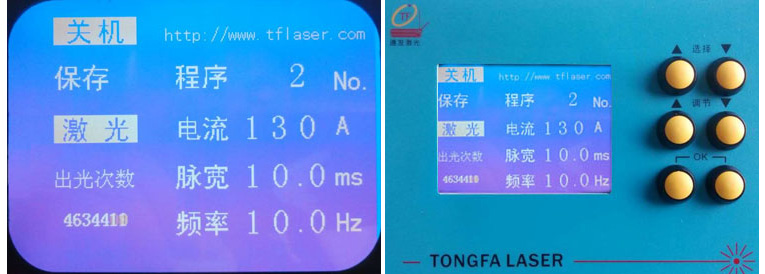 2、本首飾激光點(diǎn)焊機(jī)軟件可選擇中文或者英文界面,對(duì)不同加工位置選擇相應(yīng)的激光焊接加工參數(shù)。由選擇按鈕移動(dòng)光標(biāo)到相應(yīng)的參數(shù)位置,由調(diào)節(jié)按鈕調(diào)節(jié)參數(shù)的大??;