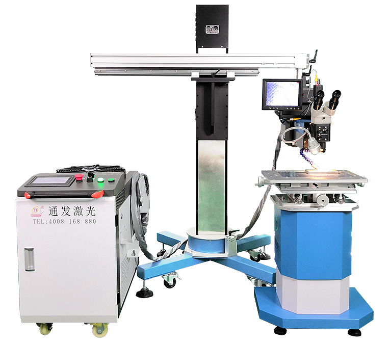 采用光纖激光器,反射率高,能量強,免維護,免調(diào)光,功耗少,相比傳統(tǒng) 模具焊來說,體積小,安全,穩(wěn)定性好超長使用壽命。 1000W光纖激光器,滿足銅、鋁焊接量大的模具及產(chǎn)品焊接加工需要。 高承重底座及工作臺,保持輕便靈活的優(yōu)點,同時提供更高承載能力。 配備.1.5P大功率一體式水冷水機,保證了大功率焊接的穩(wěn)定性。