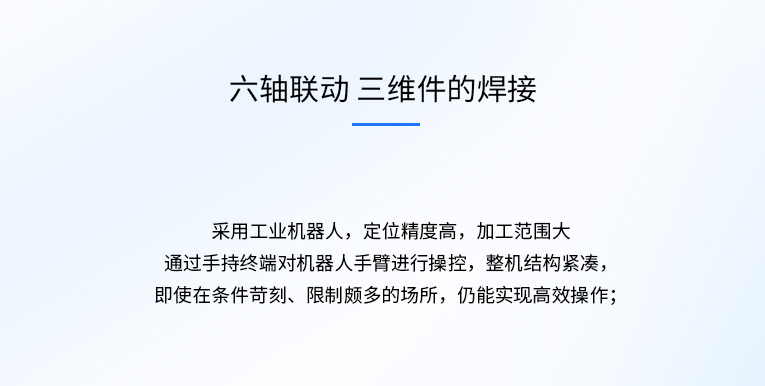 通發(fā)激光機(jī)械臂機(jī)器人激光焊接機(jī),采用機(jī)械手六軸聯(lián)動,對三維件五金件進(jìn)行3D精密焊接,非接觸式焊縫跟蹤系統(tǒng),多工位協(xié)調(diào)工作,可實(shí)生產(chǎn)智能化,自動化,省時(shí)省力更省工,全方位降低生產(chǎn)成本。